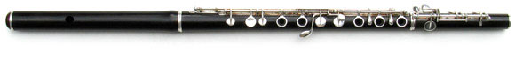 Flûte système Boehm conique avec patte de ré ou patte d’ut, en bois d’ébène ou en grenadille (cocuswood). Coulisse d’accord, système à anneaux, sol# de DORUS
